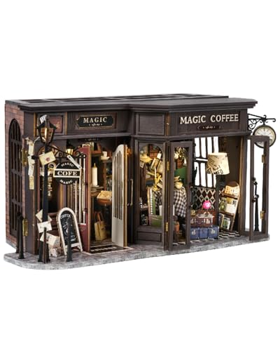 CUTEBEE gör-det-själv miniatyrdockhus-kit, 3D-trämodell mini husbyggsats för vuxna, kreativ mini-rumsidé (retro kafé)
