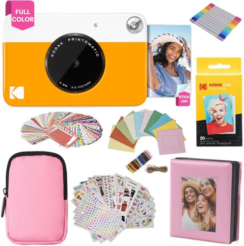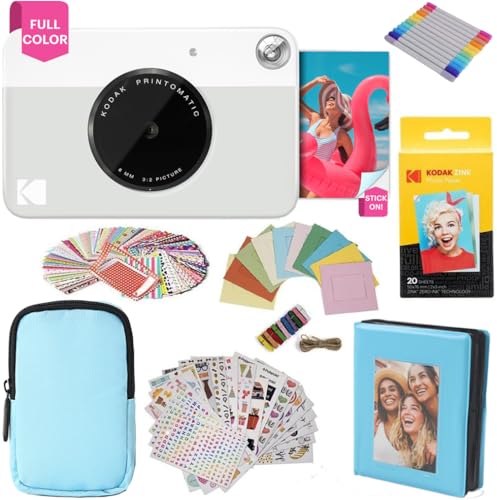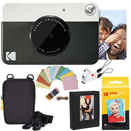 KODAK Printomatic fullfärg omedelbar tryck kamera presentpaket + mjukt fodral + zink 5 x 7,6 cm fotopapper med klibbig baksida 20 st + album + klistermärkesuppsättningar + klistermärken ramar +