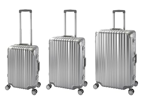 Travelhouse London T1169 Resväska med hårt skal och aluminiumram, rullväska, olika storlekar och färger, silver, Koffer-Set (S+M+L)