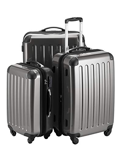 Suitline Koffer i 3 Größen, Vagnset Rollkoffer Hartschalen-Koffer Reisekoffer (55 cm, 66 cm, 76 cm) Zwillingsrollen, 15 Verschiedene Farben, grafit, SET OF 3, Bagageset