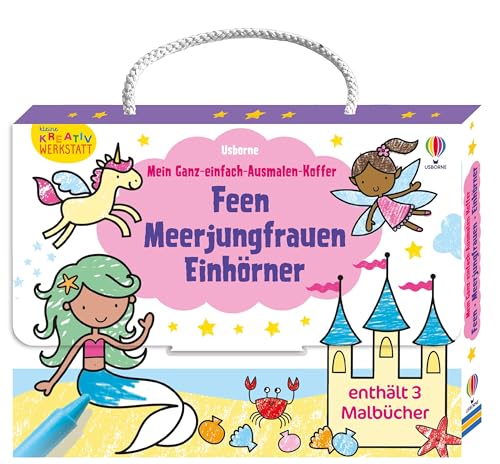 Kleine Kreativ-Werkstatt - Mein Ganz-einfach-Ausmalen-Koffer: Feen, Meerjungfrauen, Einhörner: Set aus 3 Malbüchern mit vielfältigen, großflächigen Ausmalvorlagen - für Kinder ab 3 Jahren