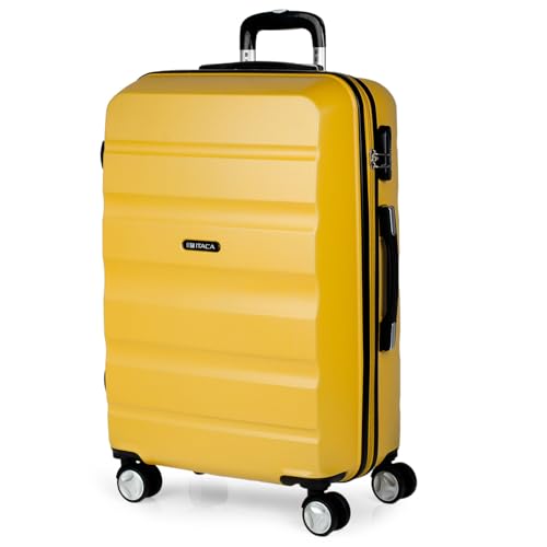 ITACA – medelstor hård resväska 67 cm ABS. 4 rullar. Hård, praktisk, robust och lätt. Hänglås Studenter och fackmän. Bra kvalitet Vacker design: T71660, senap, Koffer 67cm, resväska