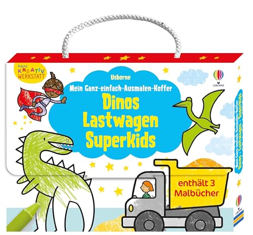 Kleine Kreativ-Werkstatt - Mein Ganz-einfach-Ausmalen-Koffer: Dinos, Lastwagen, Superkids: Set aus 3 Malbüchern mit vielfältigen, großflächigen Ausmalvorlagen - für Kinder ab 3 Jahren