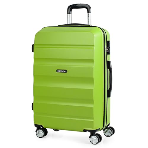 ITACA – medelstor hård resväska 67 cm ABS. 4 rullar. Hård, praktisk, robust och lätt. Hänglås Studenter och fackmän. Bra kvalitet Vacker design: T71660, Pistaziengrön, Koffer 67cm, resväska
