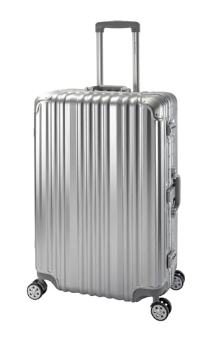 Travelhouse London T1169 Resväska med hårt skal och aluminiumram, rullväska, olika storlekar och färger, silver, Großer Koffer