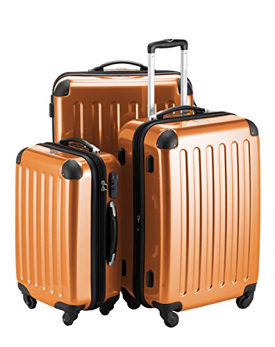 Suitline Koffer i 3 Größen, Vagnset Rollkoffer Hartschalen-Koffer Reisekoffer (55 cm, 66 cm, 76 cm) Zwillingsrollen, 15 Verschiedene Farben, Orange, SET OF 3, Bagageset