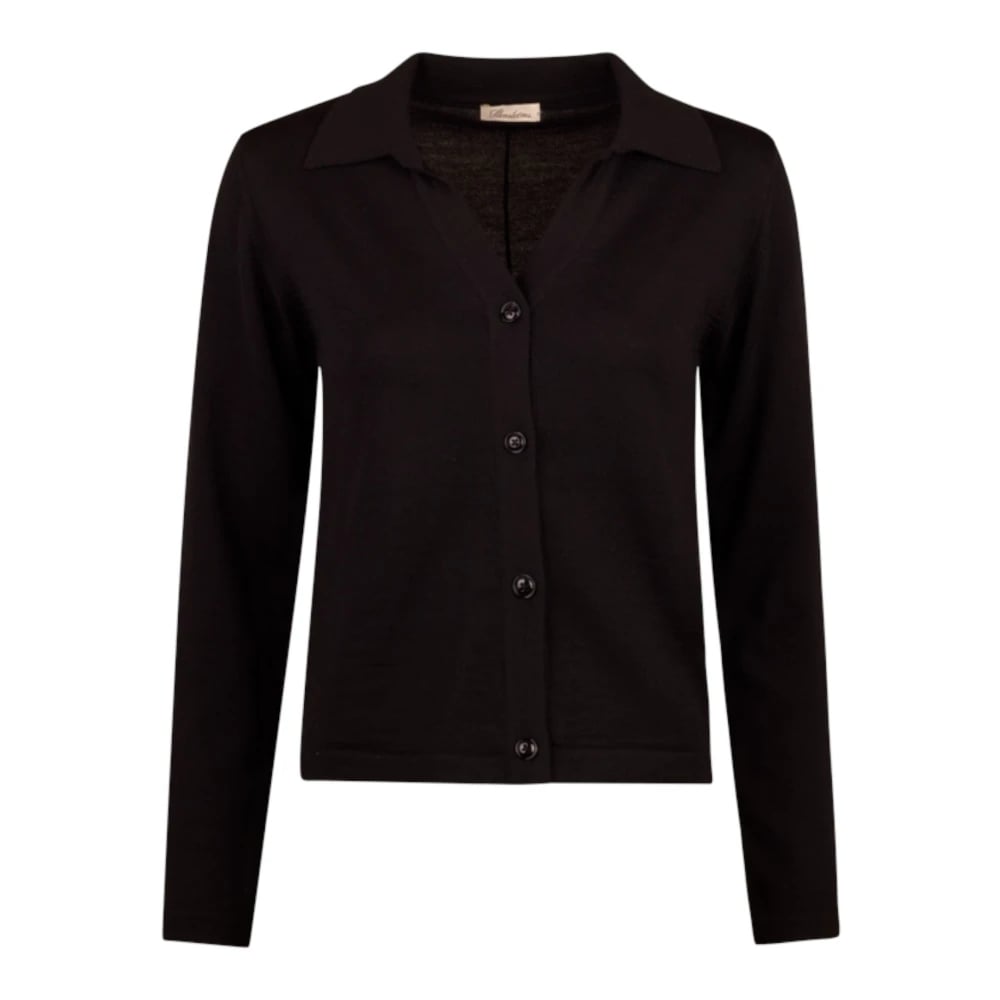 Stenströms, Stickade Tröjor , Dam, L, Polyester, Merinoull Kofta med Krage och Pärlemorknappar
