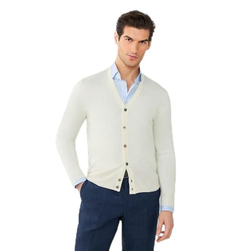 Hackett London GMD Cdi herrtröja med merinoull i silke, cardigan, Beige (elfenbensvit), S