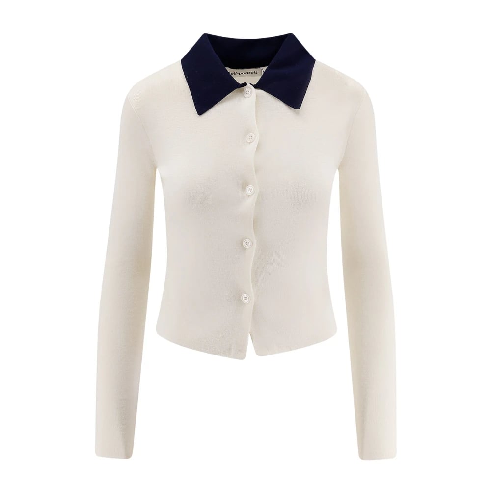 Self Portrait, Stickade Tröjor , Dam, M, Vit Merinoull Kofta Tröja