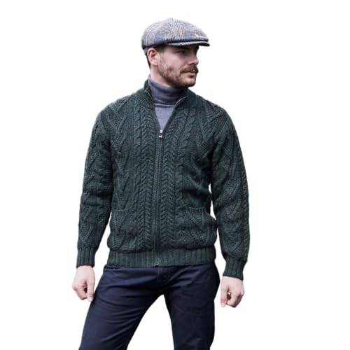 SAOL Ull herr dragkedja flätmönster vinter varm kofta tröja av merinoull med fickor, Armégrön, S