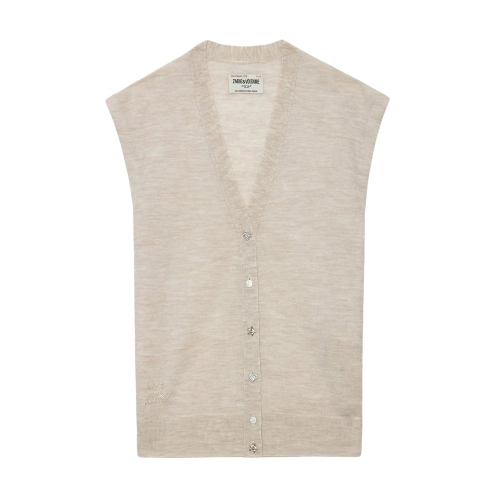Zadig & Voltaire, Stickade Tröjor , Dam, S, Beige Ärmlös Kofta i Merinoull