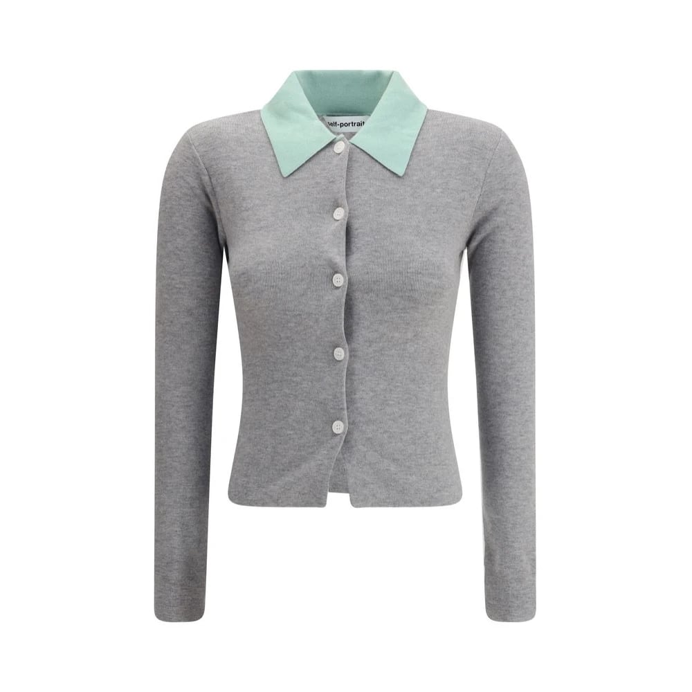 Self Portrait, Stickade Tröjor , Dam, M, Grå Merinoull Kofta Sweater