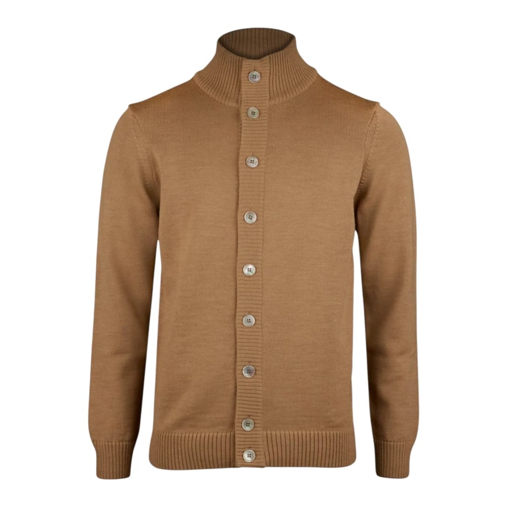 Diana Studio, Basic Beige Män Kofta 100% Merinoull, Långa ärmar, Storlek XL, Regular Fit, Beige/Taupe, XL