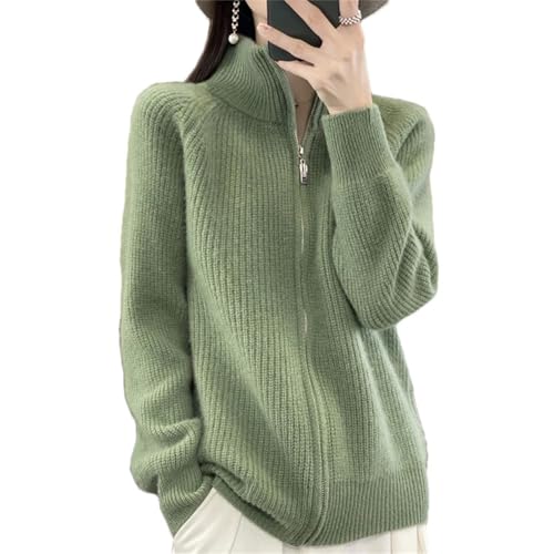 Dam solid merinoull cardigan jumper polokrage dragkedja lätt varm baslager stickad cardigan, Armén En8, XL