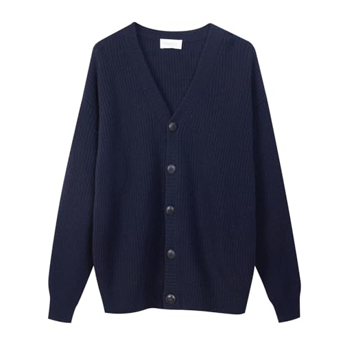 TeysHa Kashmircardigan för kvinnor, långärmad kofta av ull med knäppning och rund hals, mjuk, varm, stickad och elastisk tröja, sjögräsblå, storlek S, Sjögräs blå, S