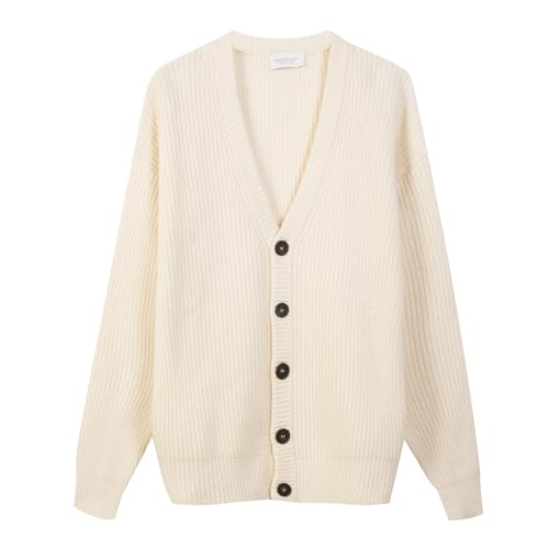 Diana Studio, Vit stickad kofta för män, ull, långärmad, storlek L, normal passform, Vit/Ecru, L