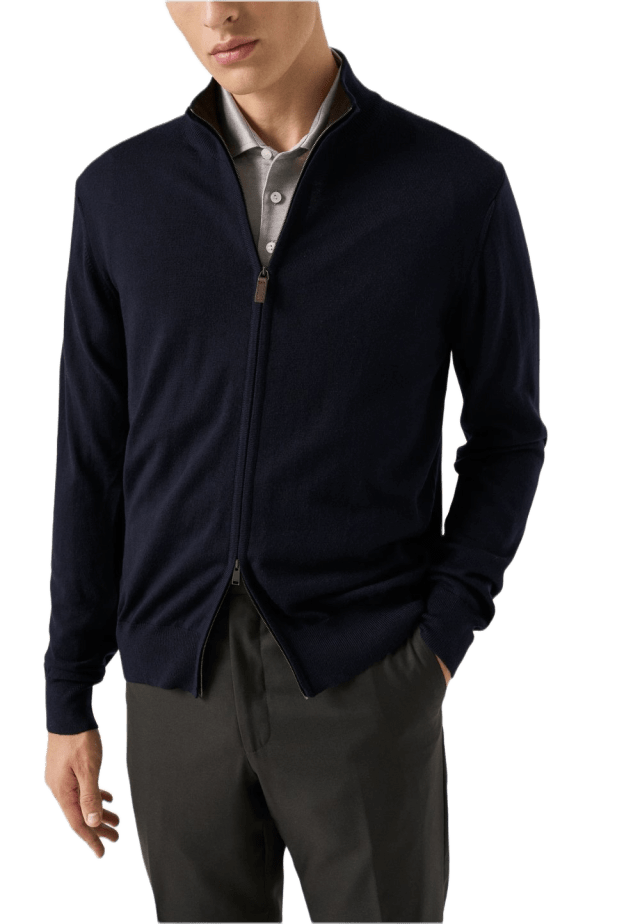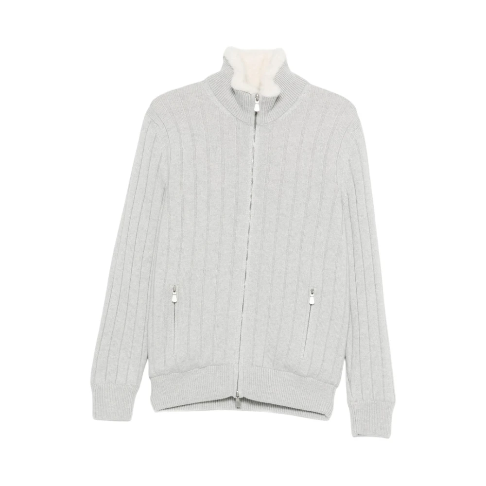 Brunello Cucinelli, Stickade Tröjor , Herr, M, Ribbstickad kofta med dragkedja
