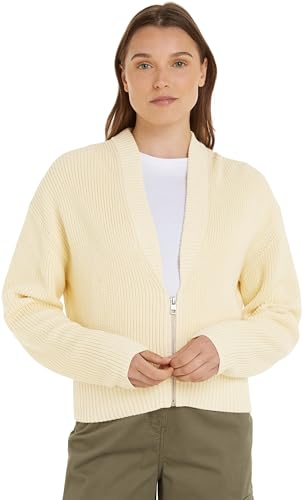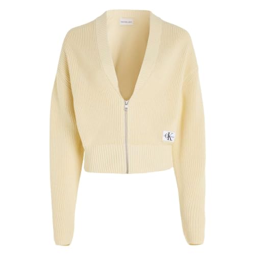 Calvin Klein Jeans Dam vävd etikett kofta med dragkedja, Vanilj, L