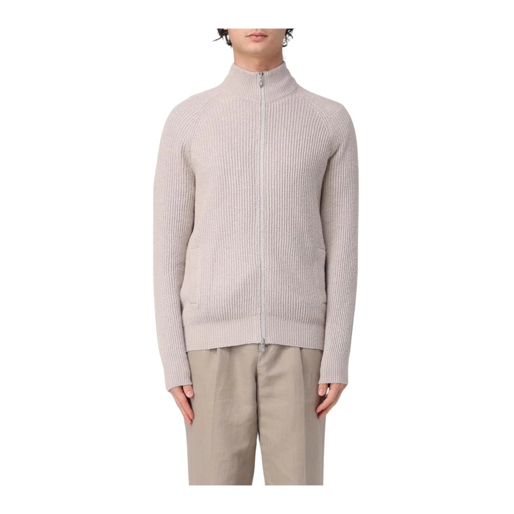 Emporio Armani, Stickade Tröjor , Herr, L, Hög Krage Kofta med Dragkedja
