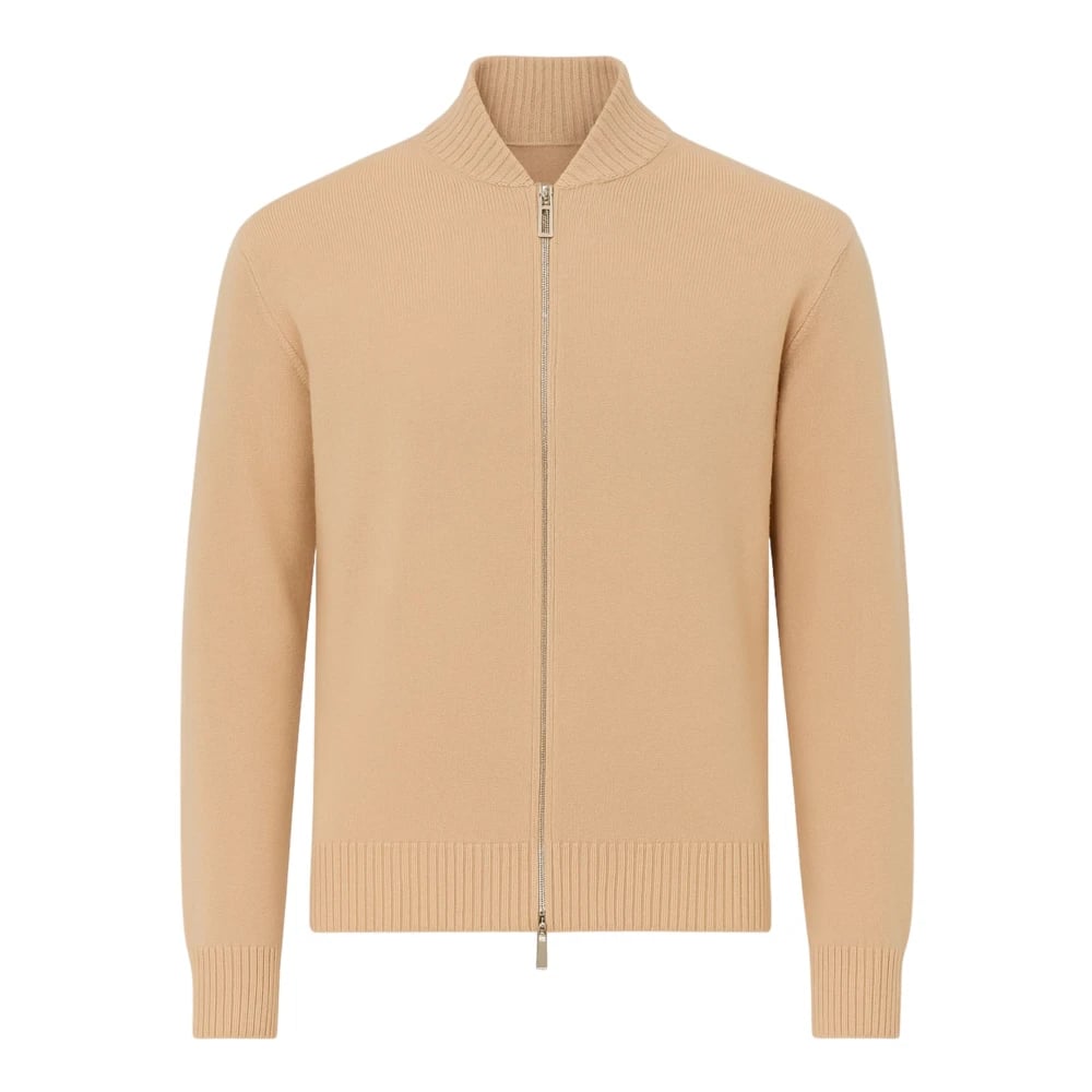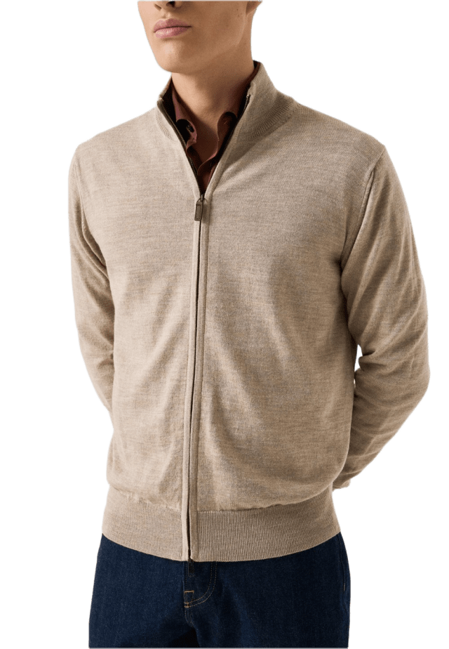 Eton Stickad Kofta Med Hel Dragkedja Beige
