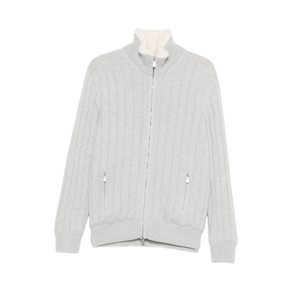 La Fileria, Stickade Tröjor , Herr, L, Ribbstickad kofta med dragkedja