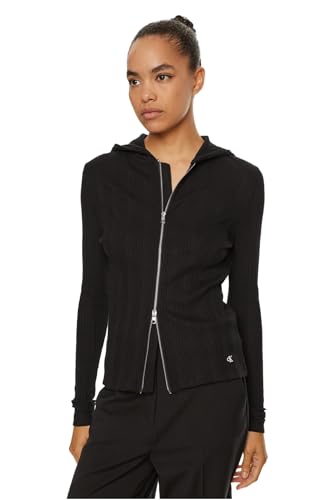 Calvin Klein jeans dam varierade ribbade ribbade kofta med dragkedja andra toppar, svart (Ck Black), XS, Ck svart, XS
