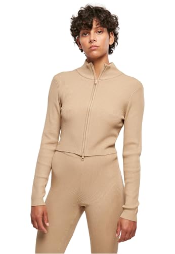 Urban Classics Dam dam skuren ribbstickad kofta tröja med dragkedja, unionsbeige, XXL, Unionbeige, XXL