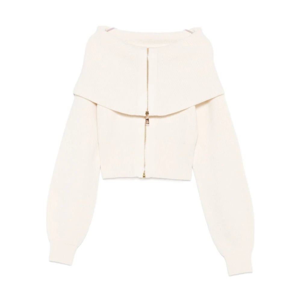 Elisabetta Franchi, Stickade Tröjor , Dam, M, Kofta i ullmix med dragkedja
