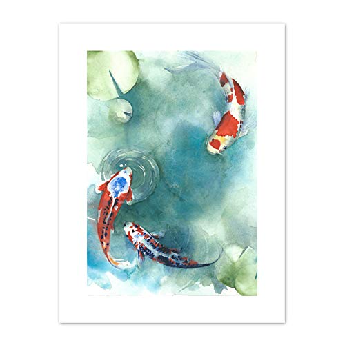 Wee Blue Coo Japansk koi-fisk med liljor konsttryck kanvas premium väggdekor affisch