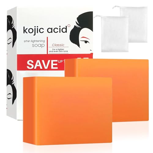 Kojic Acid Soap, 2 stycken gurkmeja tvål, tormerisk kojic acid tvål, kojissyra-tvål, tormerisk tvålbit ljustvål original med skumnät djuprengöring för ansikte och kropp, tar bort akne