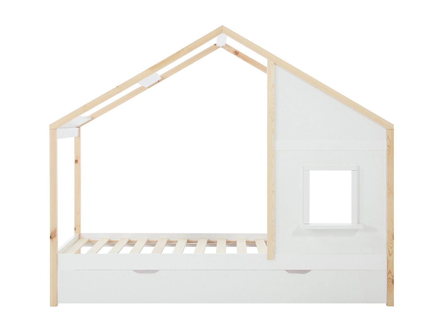 Kojsäng 90 x 190 cm med låda - Tall och MDF - Färg: Vit och naturlig - RINELYA