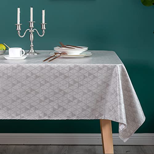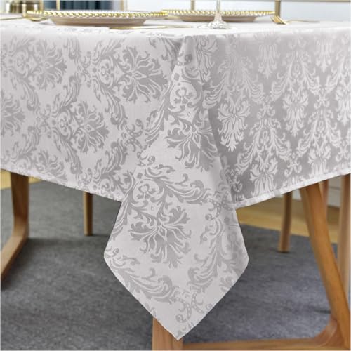 Rektangulär bordsduk – 132 x 182 cm grå damast bordsduk jacquarddesign spillsäker skrynkelbeständig vattentät mjuk polyester avlång bordsskydd för kök fester bord