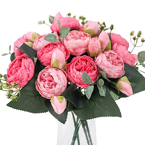 Veryhome 4 buntar konstgjorda blommor, pioner av siden, falska buketter för bröllopsdekoration, bord, kök, kontor, trädgård, brudbukett (djuprosa)
