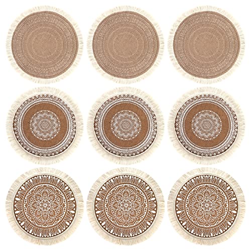 Runda bordstabletter, set om 9 bordstabletter, runda, vävda bordstabletter, bordstabletter runda värmebeständiga bord bordstabletter tvättbara tallriksunderlägg för kök matsal bröllop bord
