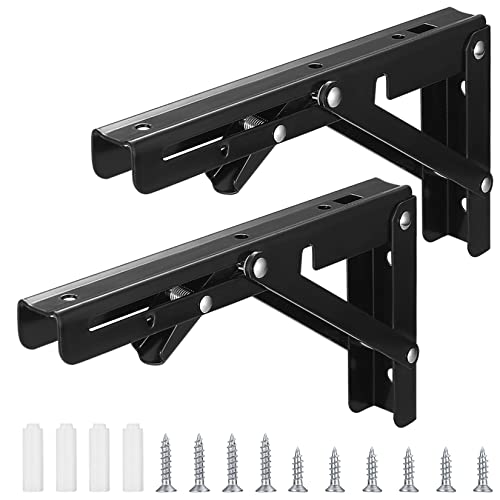 Vikbar konsol för tunga laster, 2-pack, Rostfritt, Däckvägg, Vinkelstöd, Vikt 90 grader, Hyllstöd för kök, kontor, bord, vägg - Svart