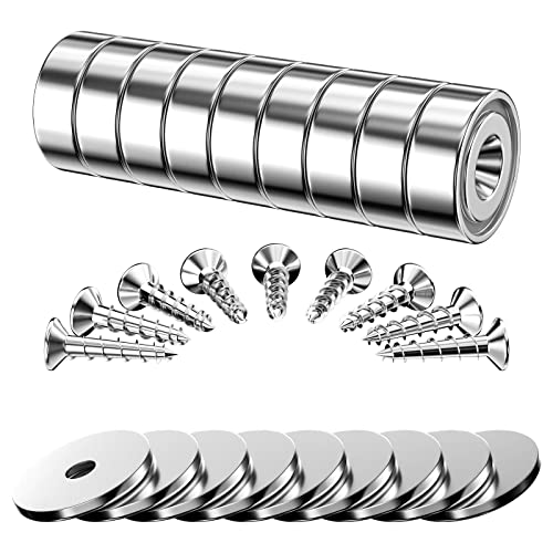 Gvolatee 9 delar kraftfull Neodym-magnet 12 kg styrka 20 x 7 mm med hål och kapsel, överkraftfull skivburkmagnet med skruvar och stålkuddar, för kylskåp, svart bord, kök