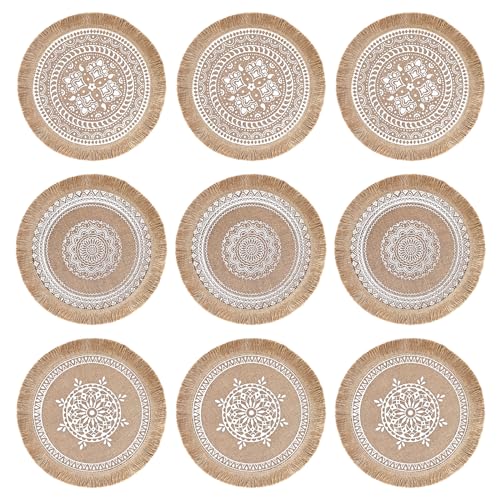 Vegena Runda bordstabletter, set om 9 bordstabletter, runda, vävda bordstabletter, bordstabletter runda värmebeständiga bord bordstabletter tvättbara tallriksunderlägg för kök matsal bröllop bord