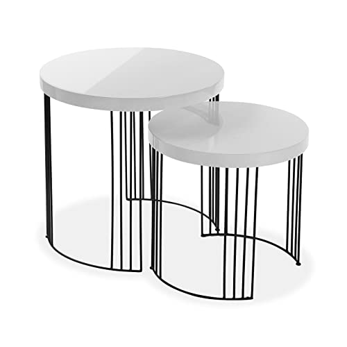 Versa Kansas Hjälpbord för vardagsrum, rum eller kök Modern låg bord, set med 2, mått (Al x L x An) 55 x 55 x 55 cm, Trä och metall, Vit