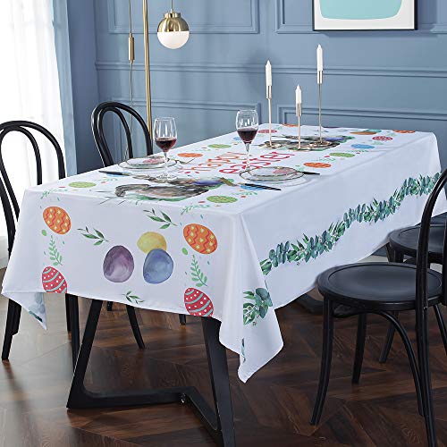 SASTYBALE Påskbordsduk blommönster polyester bordsduk spillsäker skrynkelbeständig bordsskydd för kök matbord bord (rektangel/avlång, 132 cm x 178 cm (4-6 säten)