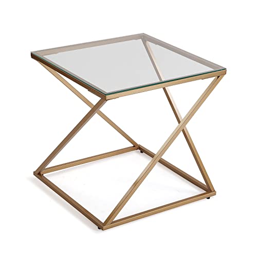 Versa Trento Hjälpbord för vardagsrum, rum eller kök Modern Låg bord, Mått (Al x L x An) 51 x 51 x 51 x 51 cm, Glas och Metall, Guldfärg