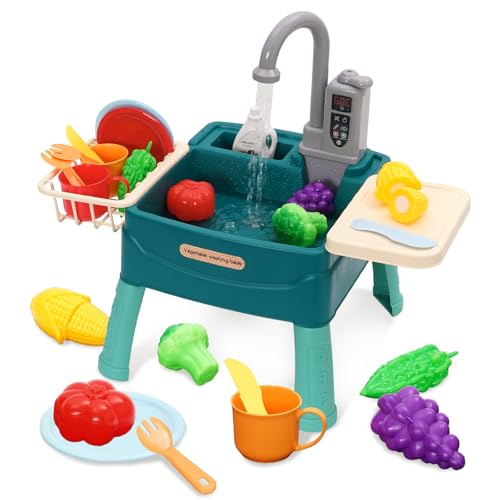 Lekhandfat för barn, köksdiskbänk leksaksset med vattenkrets, elektrisk kran, rollspel barntvättställ, leksakstillbehör kök rollspel för barn 3+