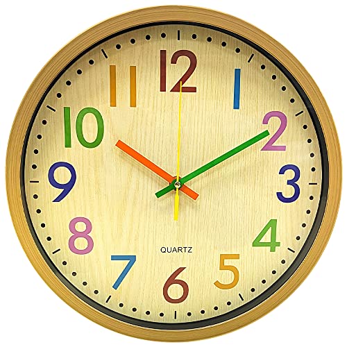 ALEENFOON 30 cm tyst väggklocka som inte tickar 30 cm dekorativ färgglad kvarts svepande batteridrivna väggklockor för hem vardagsrum sovrum kontor kök skola barn