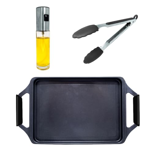 Nerthus FIH 1669 grillplatta kök med tång och oljespray induktion gas glaskeramik hälsosam matlagning utan överflödigt fett
