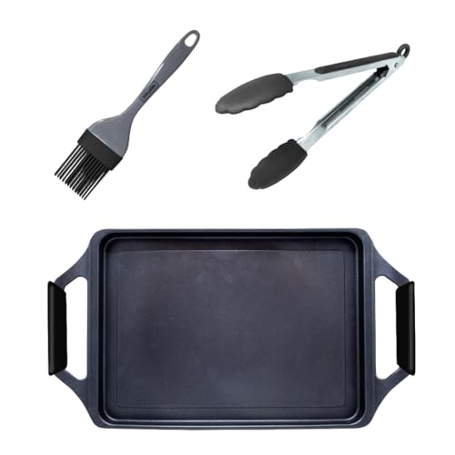 Nerthus FIH 1668 grillplatta kök med tång och pensel induktion gas glaskeramik laga mat med jämn oljefördelning