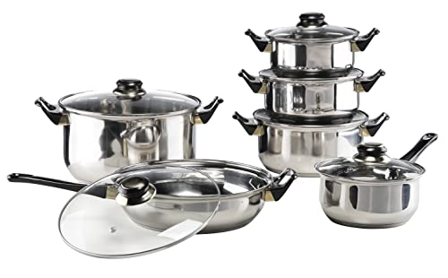 Boltze kokkärlsset i rostfritt stål, LAURA 12-delarsset med stekpanna, diameter 24 cm med glaslock