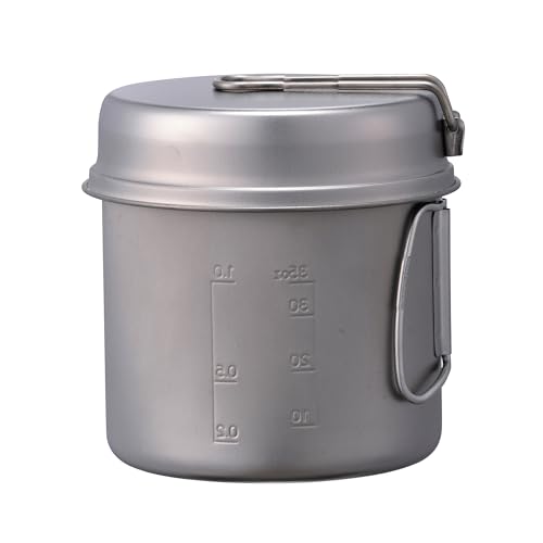 Snow Peak Titanium Trek Combo kokkärlsset, ultralätt japanskt titan, stapelbart och hopfällbart set med två stekpannor och 2 grytor samt nätväska, för camping och utomhusbruk