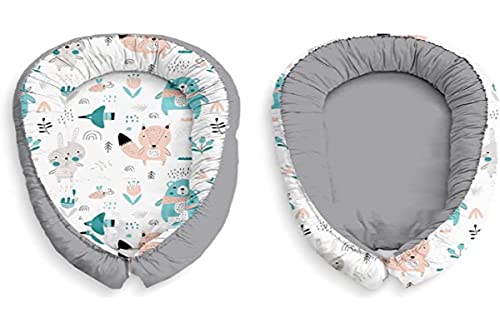 Babynest babynest för nyfödda 90 x 50 cm babynest bärbart bo för säng barn mysnest kokong för pojkar och flickor Igelkott Ugglor ljusgrå