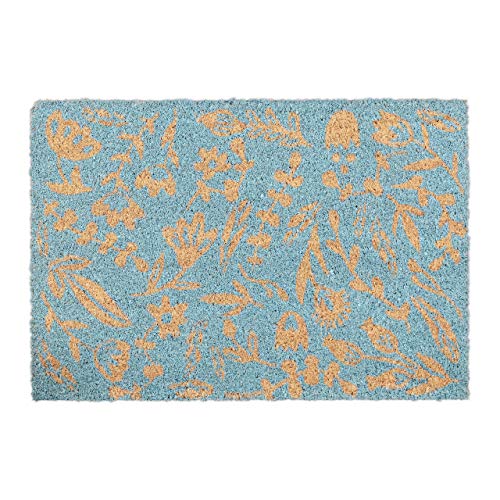 Relaxdays Dörrmatta kokos, blommotiv, 40 x 60 cm, halkfri dörrmatta inomhus och utomhus, kokosmatta, dörrmatta blå