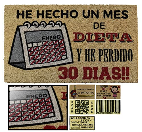 LucaHome - 70x40 naturlig kokosmatta med halkfri bas, Rolig Kokosmatta Jag har gjort en månad av diet, Absorberande matta Entré House, Perfekt för ytterdörr eller hall