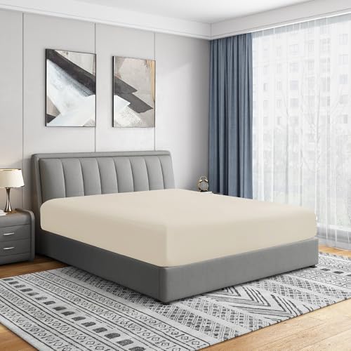 Cathay Home Lyxigt skrynkel- och blekningsbeständigt dubbelborstat ultramjukt mikrofiber 14-tums standardficka enkelt dra-på-lakan, kokosmjölk, drottning